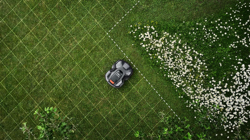 Sinds dit jaar kunnen eigenaars van een Husq-varna Automower® gebruikmaken van de nieuwe AIM-technologie. AIM staat voor Automower® Intelligent Mapping en voorziet in een virtuele kaart van het gazon. Die laat toe om via de bijbehorende smartphone app verschillende zones te definiëren, zodat niet alleen maai- en niet-maaizones van elkaar onderscheiden kunnen worden, maar bijvoorbeeld ook verschillende maaischema’s en -hoogtes ingesteld kunnen worden. Zo kunnen tuinbezitters het gras en wilde bloemen in bepaalde zones laten groeien ter bevordering van de biodiversiteit of het maaischema aanpassen bij heraanleg, het inzaaien van nieuw gras of voor schaduwrijke delen van het gazon die minder vaak gemaaid moeten worden.