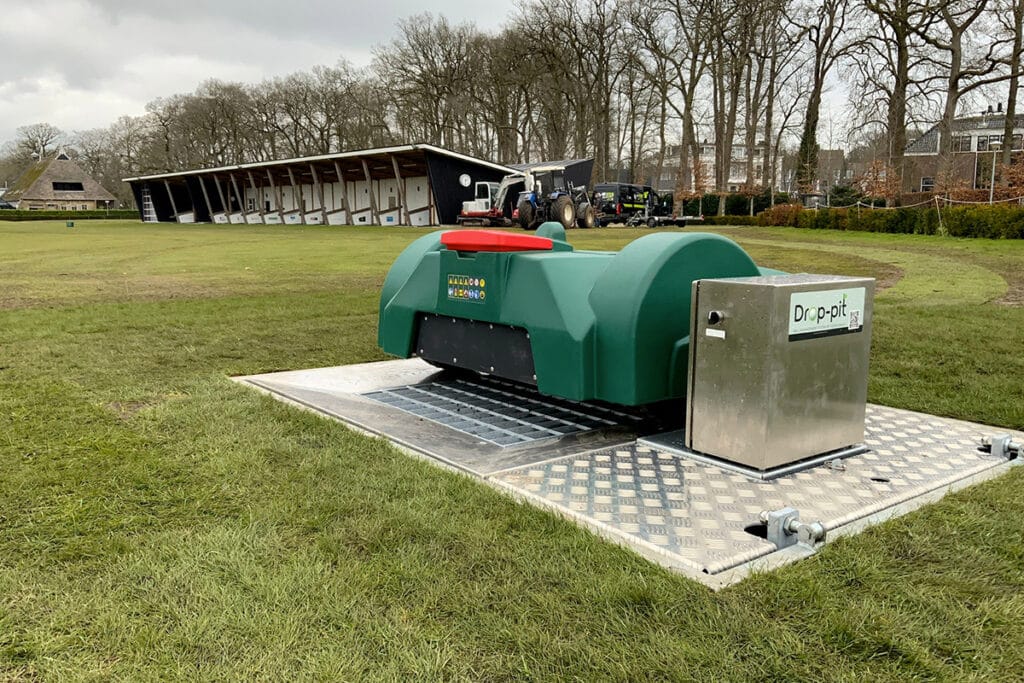 Hoewel Drop-Pit Light ook door VDB Technics geïnstalleerd wordt, is het systeem sneller en eenvoudiger in gebruik te nemen. Er zijn geen ondergrondse werken nodig, en je kiest zelf of je de opvangbak bovenop of gedeeltelijk in de grond plaatst. Wie niet ingraaft, kan werken met een oprijramp. “En we werken aan een plug-and-playmethode zodat het systeem nog budgetvriendelijker wordt.”