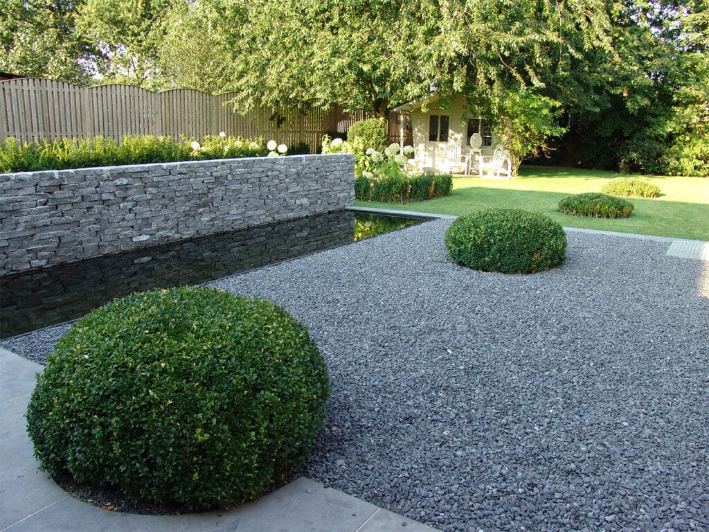 “Er is steeds meer vraag naar waterdoorlatende grondbedekkingen”, zegt Els Meynen van E.L.S. Garden. “De regelgeving ondersteunt die trend, maar ook onze vakmannen en hun klanten hebben daar steeds meer aandacht voor. Dan is grind een dankbaar materiaal, net omdat je er zoveel kanten mee uit kan. Het waterdoorlatende karakter doet geen afbreuk aan de esthetiek. En door de veelheid aan kleuren, formaten en steensoorten is er voor elke klant en voor elk project gegarandeerd een passende optie.”