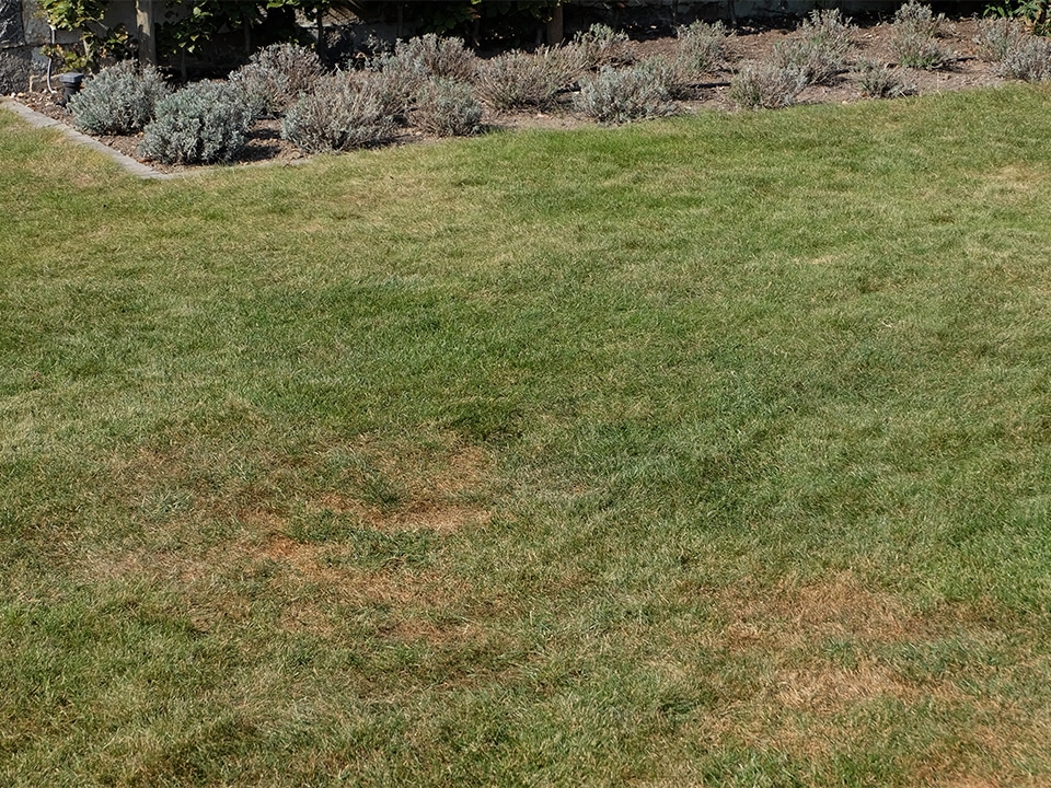 Bij het behandelde gazon was het duidelijk dat sommige delen meer te lijden hadden onder de droogte dan andere. Met behulp van Kick® werden zowel die verschillen als het waterafstotend karakter van de bodem opgeheven en de uniformiteit van het gazon hersteld.