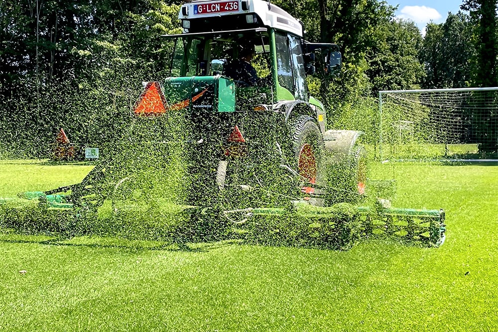 Ivo Zoons, zaakvoerder Algrozo: “We – mijn echtgenote en mezelf – kwamen definitief in de cultuurtechnische sector terecht toen we in 2020 Gilbert Vanharen overnamen. We groeiden zo uit tot een totaalspecialist van grondwerken, aanleg, renovatie en onderhoud van sportterrein, gazonaanleg, …. Voor Patro Eisden, bijvoorbeeld, hebben we het volledige maaibeleid onder onze vleugels. Een echte groundsman-job, dus.