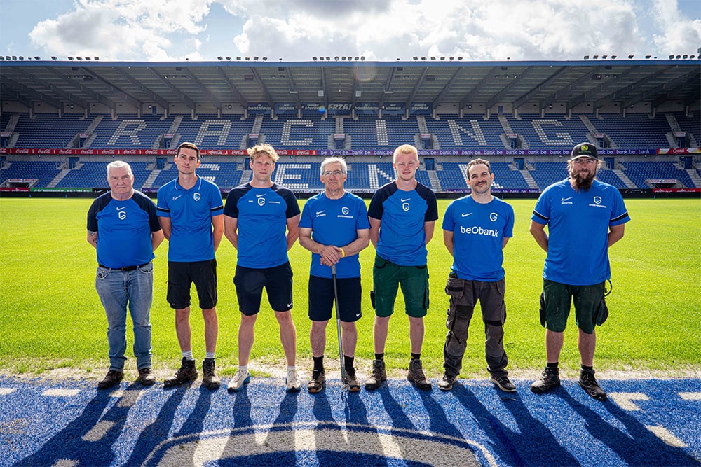 Het beste uit het veld halen, doet Van Endert met een ploeg van zeven. “Samen staan we in voor het wedstrijdveld in Genk, de 2,5 oefenvelden voor de A-ploeg, de 4,5 oefenvelden van onze jeugdploeg, en een extra stadionveld in Geel, waar onze beloften hun wedstrijden spelen. De meeste aandacht gaat natuurlijk naar het wedstrijdveld, waarbij het visuele een rol speelt. Dit veld zien onze supporters natuurlijk live en op televisie.”