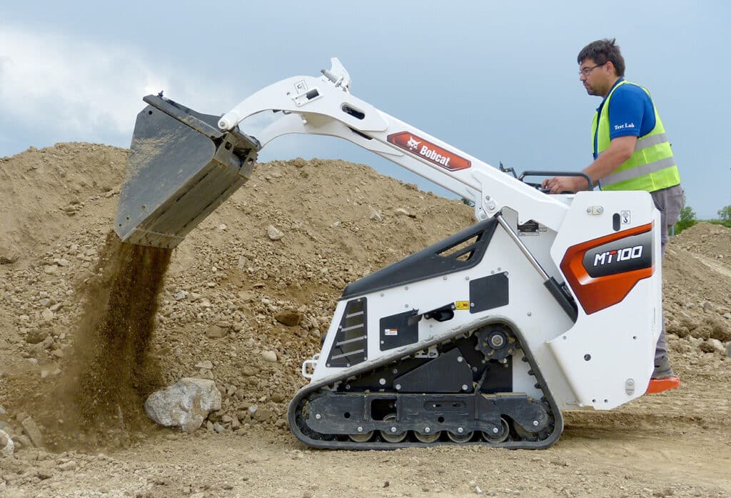 De splinternieuwe minirupslader MT100 is ontworpen is als alternatief voor zwaar werk met kruiwagens, schoppen en andere handwerktuigen. Hij heeft een hefvermogen van 460 kg (485 kg bij ballast achterop), hefhoogte van 2057 mm, een kiplast van 1314 kg (1387 kg) en weegt zelf ruim 1,5 ton. Op minimale breedte van 900 mm rijdt hij met gemak door poorten, deuropeningen en andere smalle doorgangen. Dankzij de bodemdruk van 36 kPa (5,25 psi) biedt het standaardrupswerk van 180 mm breedte goede bescherming voor de meeste grasoppervlakken en bestratingen. De MT100 als Wide Track is slechts 1044 mm breed. De optionele 250 mm brede rupskettingen verlagen de bodemdruk tot slechts 30 kPa en maken de machine nog stabieler. De bodemvrijheid is een flinke 205 mm.