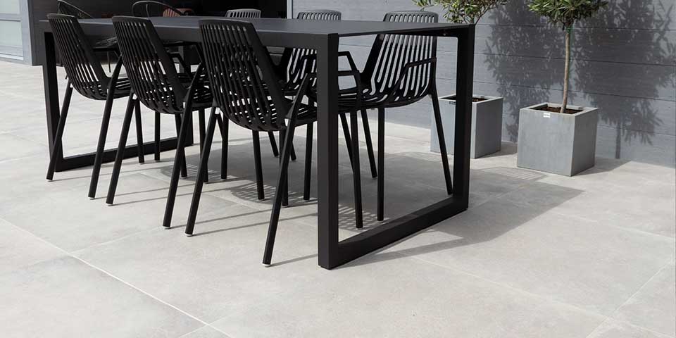 De trend van grootformaattegels beperkt zich niet tot het interieur en terrassen. Ook voor opritten stijgt de vraag. “Lange tijd waren betontegels daarvoor de enige oplossing, met afmetingen van 100×100 centimeter of 120×120 centimeter en een dikte van 6 of 8 centimeter. Naast deze producten bieden we sinds kort echter ook een keramische oplossing aan, met name een gamma tegels met een dikte van 3 centimeter en afmetingen van 60×60 centimeter of 90×90 centimeter. Op die manier kan een oprit dus ook perfect in keramische steen afgewerkt worden.”